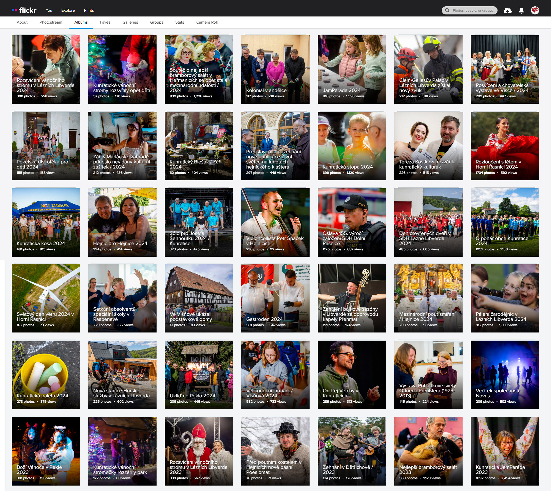 Fotografie Fotografie na Facebooku Fotografie na Flickru Fotoalba 2025 Pohanské kameny Silvestrovský výšlap na Pohanské kameny ve Višňové / 2025 Multiinstrumentalista Tomáš Najbrt Multiinstrumentalista Tomáš Najbrt nadchnul posluchače ve Frýdlantském výběžku Divadlo Višňovský rok Divadlo Višňovský ROK uchvátilo publikum v Kunraticích svou hrou „Taková láska z mládí“